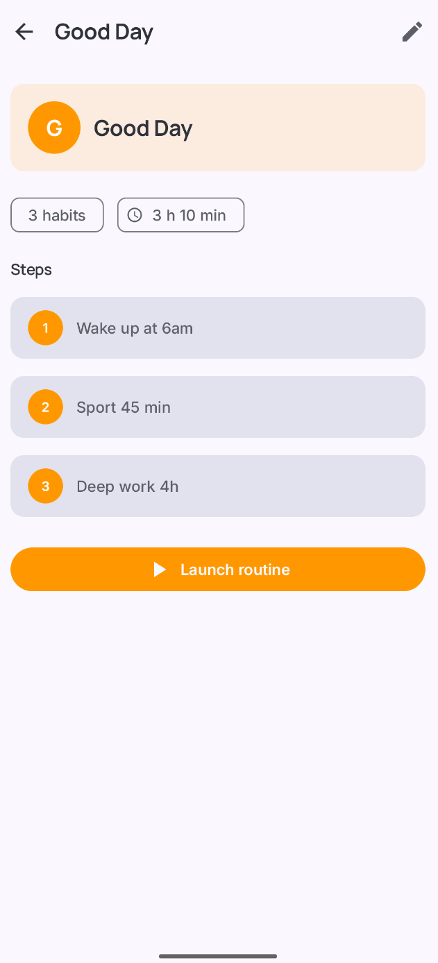 Regroupez vos habitudes en routines et exécutez un bloc complet d'un seul geste.